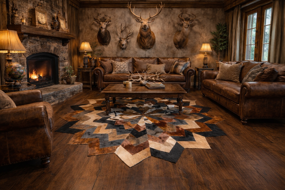 African Animal Hide Flower Shape Area Rug - 1.3m
